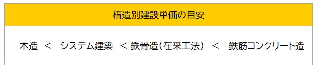 一方、重量鉄骨造や鉄筋コンクリート造(RC造)は耐久性が高い反面、コストも高くなります。