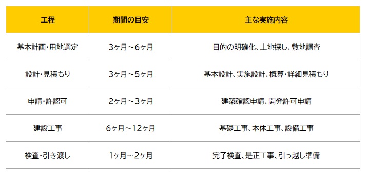 見込んでおく必要があります。短期間で無理に進めようとすると、設計の詰めが甘くなったり、施工ミスが発生したりす