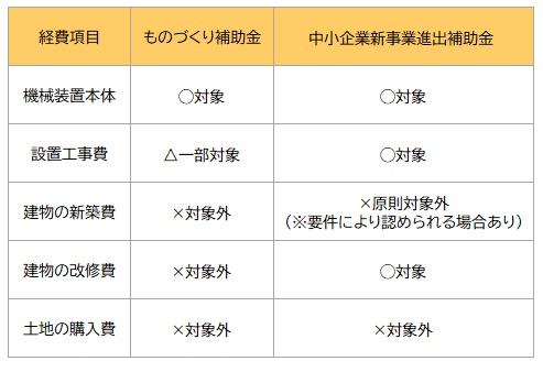 一方で、2025年に新設された「中小企業新事業進出補助金」(事業再構築補助金の後継制度)では、建物費が補助対象に含