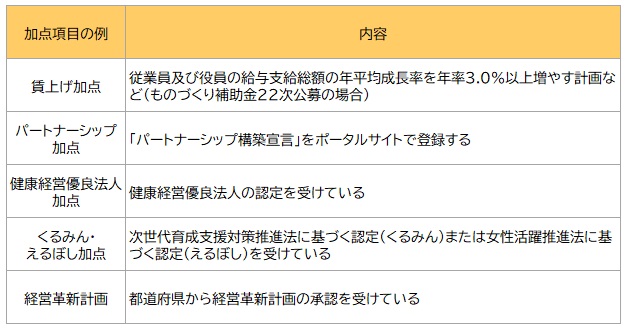多くの補助金には、基本要件とは別に「加点項目」が設定されています。これを満たすことで審査時の点数が底上げされ、採択ライン